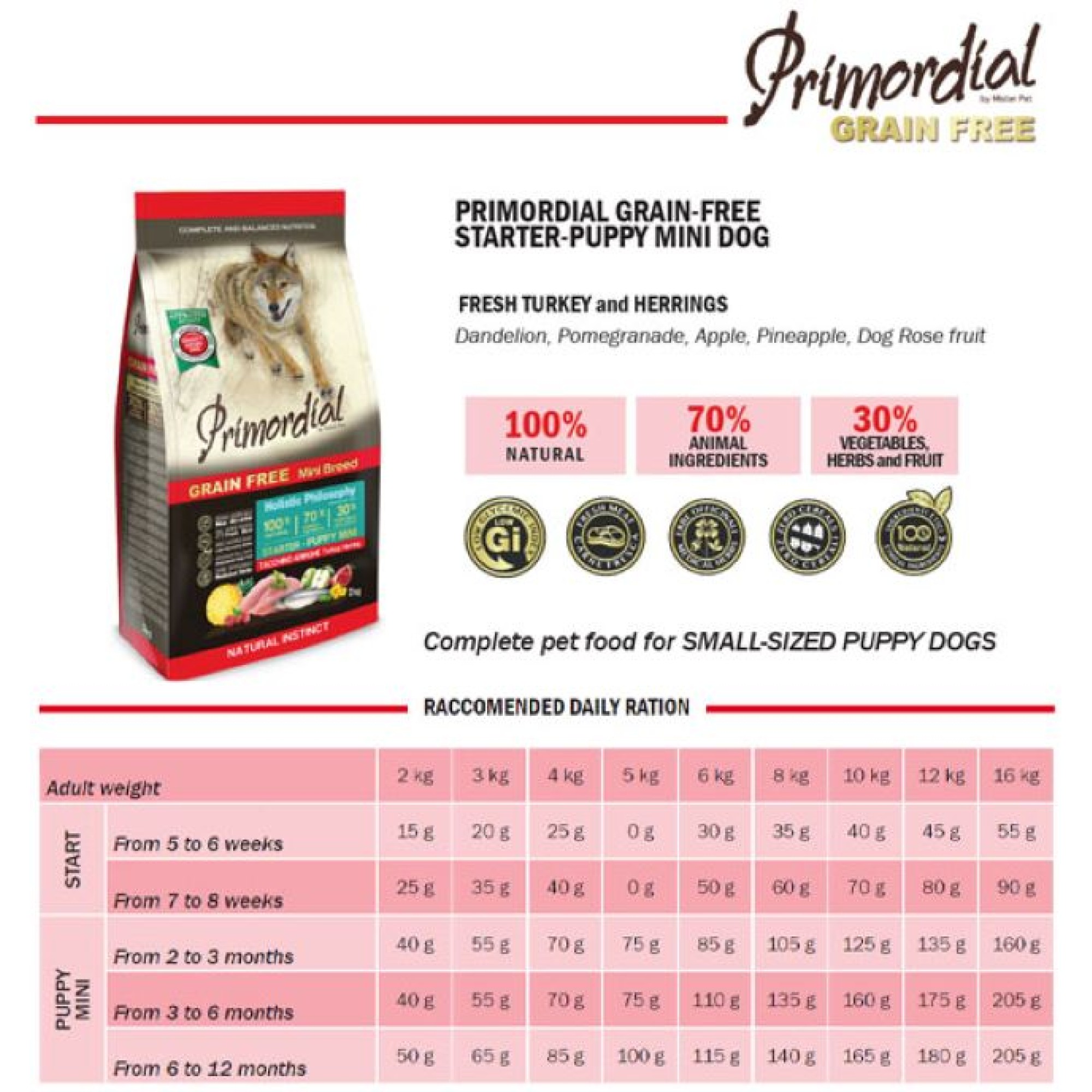 PRIMORDIAL GRAIN FREE HOLLISTIC STARTER PUPPY DOG MINI BREEDS ΓΑΛΟΠΟΥΛΑ ΡΕΓΓΑ 2Kg