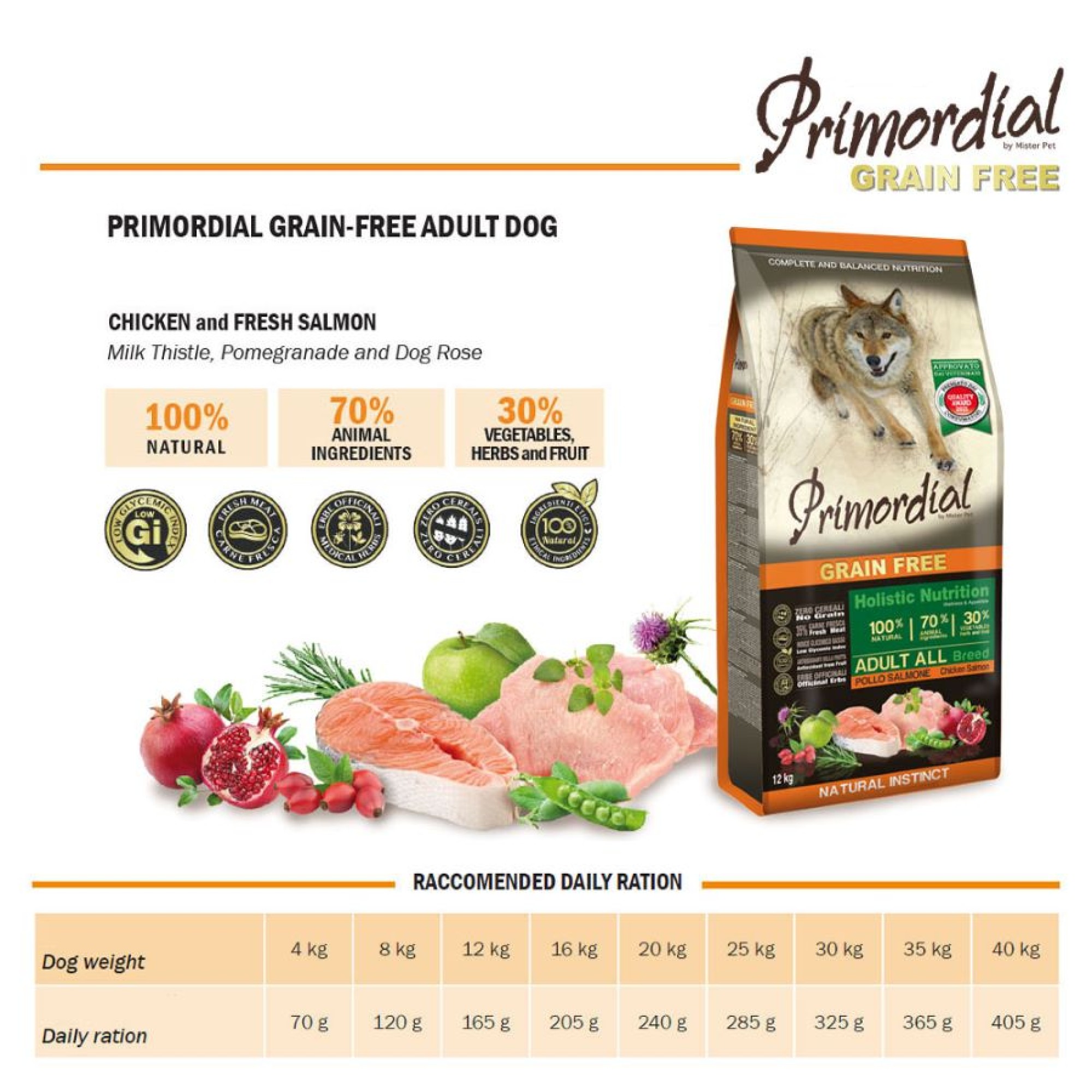 PRIMORDIAL GRAIN FREE HOLLISTIC ADULT DOG CHICKEN SALMON 12kg