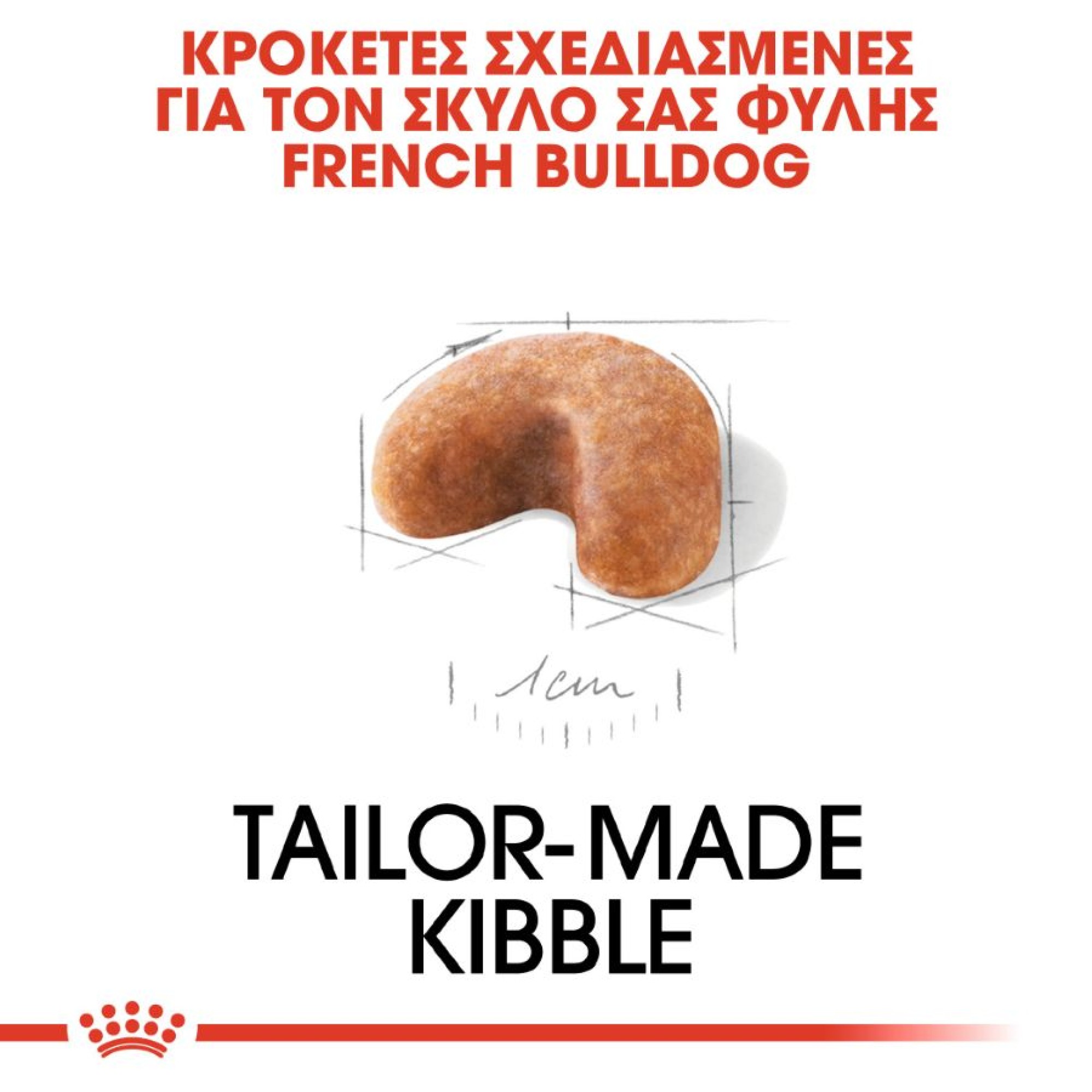 Η κροκέτα στο ROYAL CANIN® French Bulldog Puppy είναι σχεδιασμένη αποκλειστικά για το γαλλικό μπουλντόγκ κουτάβι σας. Επειδή αυτή η φυλή έχει ένα ιδιαίτερα βραχυκεφαλικό σαγόνι, το σχήμα και το μέγεθος αυτής της κροκέτας είναι ειδικά προσαρμοσμένη για να διευκολύνει το κουτάβι σας να την επιλέξει. Επιπλέον, η υφή του κουνουπιού ενθαρρύνει το κουτάβι σας να το μασήσει πριν καταπιεί.