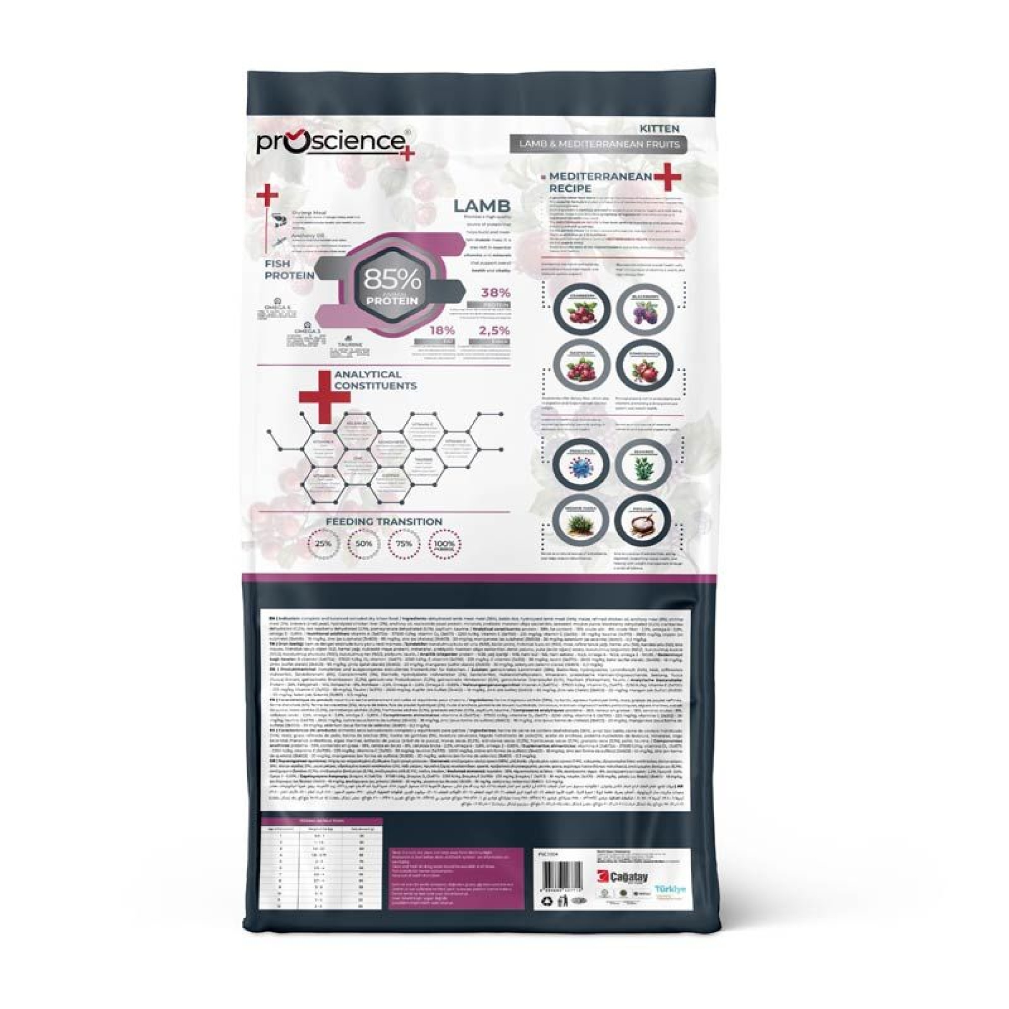 Η ξηρά τροφή Proscience Kitten Lamb είναι μια πλήρης και ισορροπημένη, εξωθημένη ξηρά τροφή ειδικά σχεδιασμένη για γατάκια, που περιέχει 85% ζωική πρωτεΐνη.