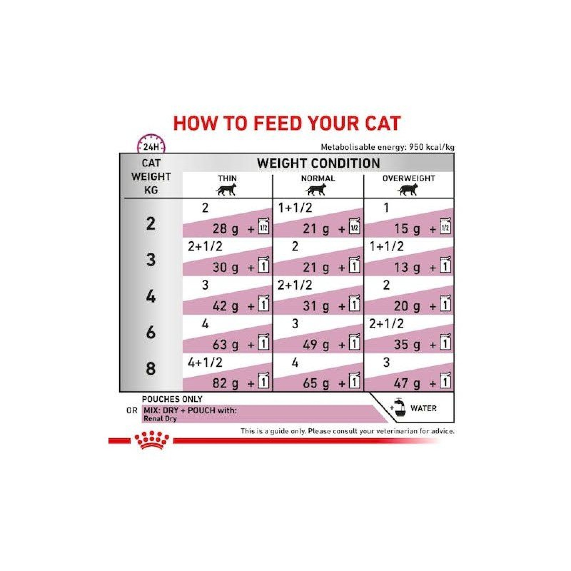 Πριν από τη χρησιμοποίηση, συνιστάται να ληφθεί η γνώμη ενός κτηνιάτρου όπως και για παράταση της διάρκειας χρήσεως.Χρησιμοποιήστε αρχικά τη RENAL WITH CHICKEN για έως 6 μήνες σε περιπτώσεις χρόνιας νεφρικής ανεπάρκειας και για τη μείωση του σχηματισμού λίθων από άλατα του οξαλικού οξέος.