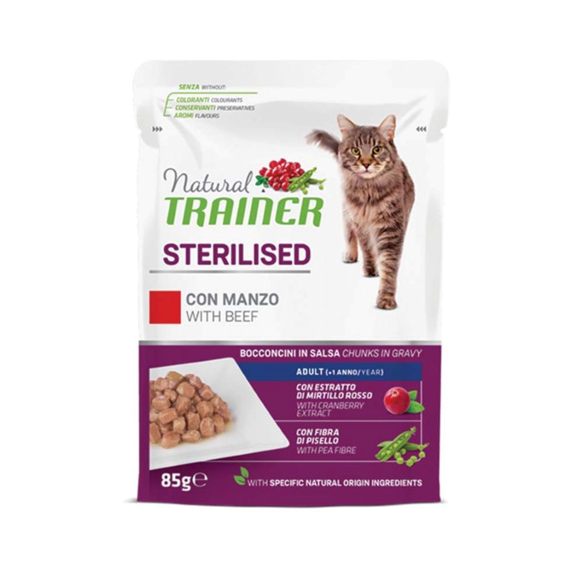 NATURAL TRAINER CHUNKS IN GRAVY STERILISED ADULT CAT ΒΟΔΙΝΟ 85GR
